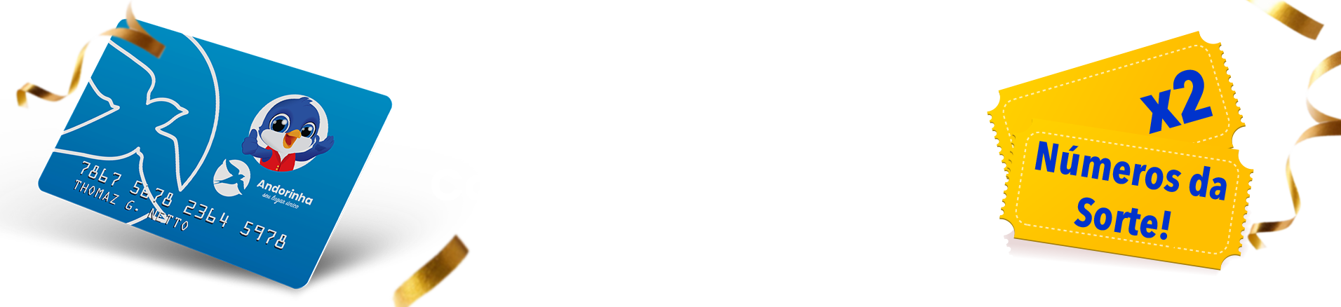 Pagando com o cartão Andorinha, você tem 2 vezes mais números da sorte. Exemplo: Compra de R$ 250,00 x 2 = 2 números